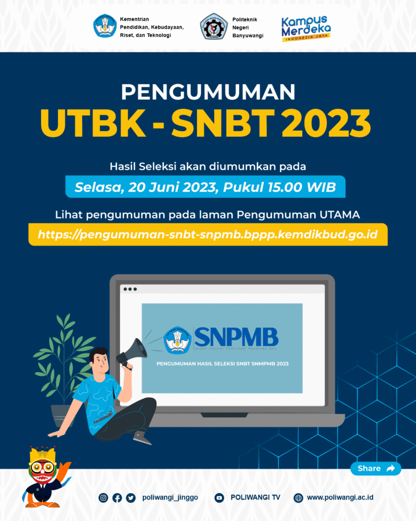 Daftar nama calon mahasiswa baru Politeknik Negeri Banyuwangi yang diterima melalui jalur Seleksi Nasional Berdasarkan Tes (SNBT) 2023 bisa diunduh