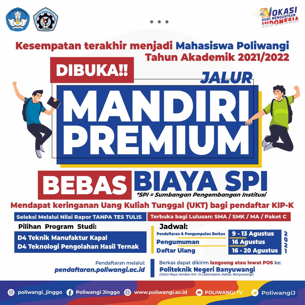 PESERTA LULUS SELEKSI KARTU INDONESIA PINTAR KULIAH (KIP-K) TAHUN 2021 POLIWANGI JALUR MANDIRI PREMIUM DAN PESERTA PENGGANTI