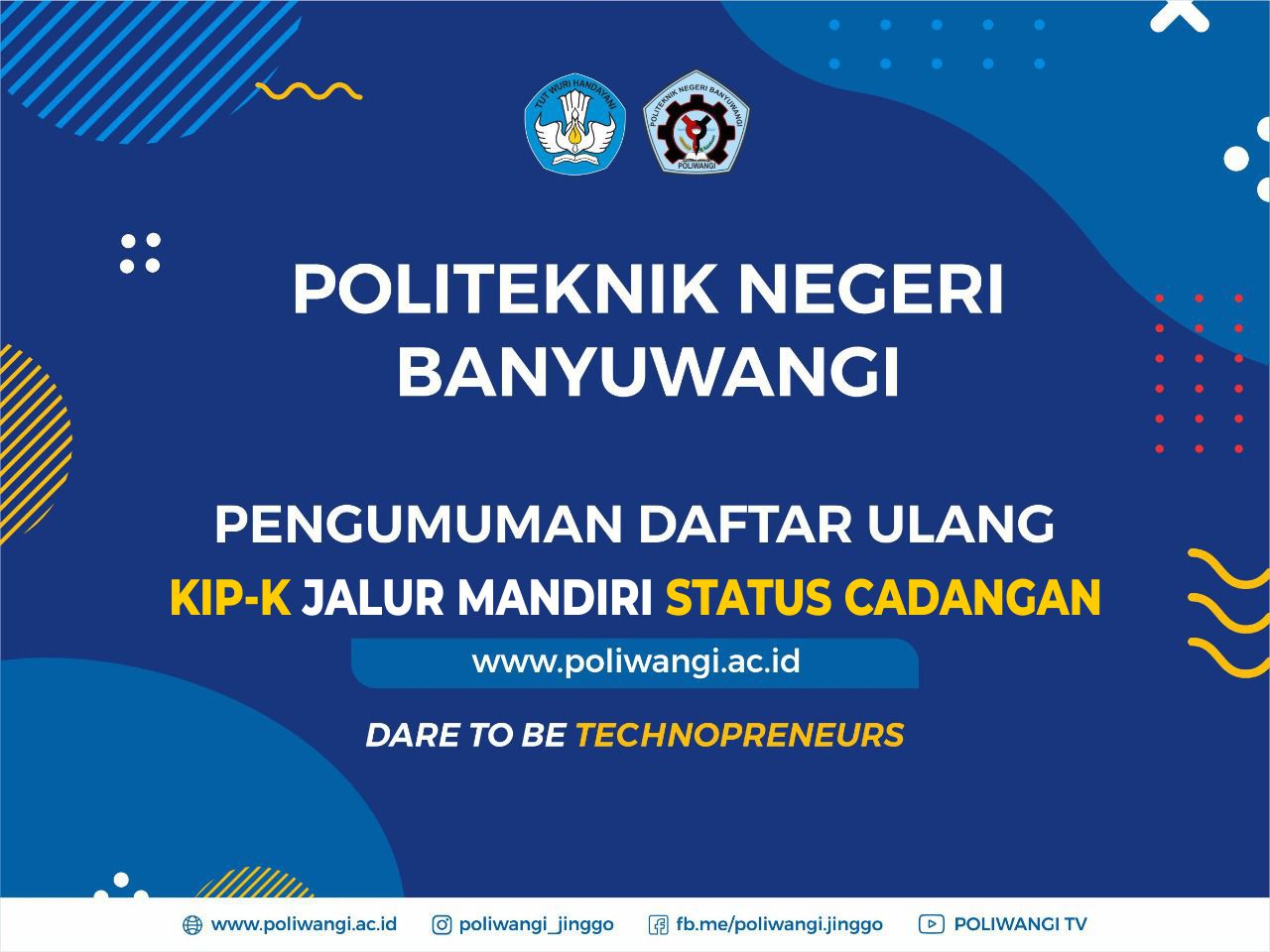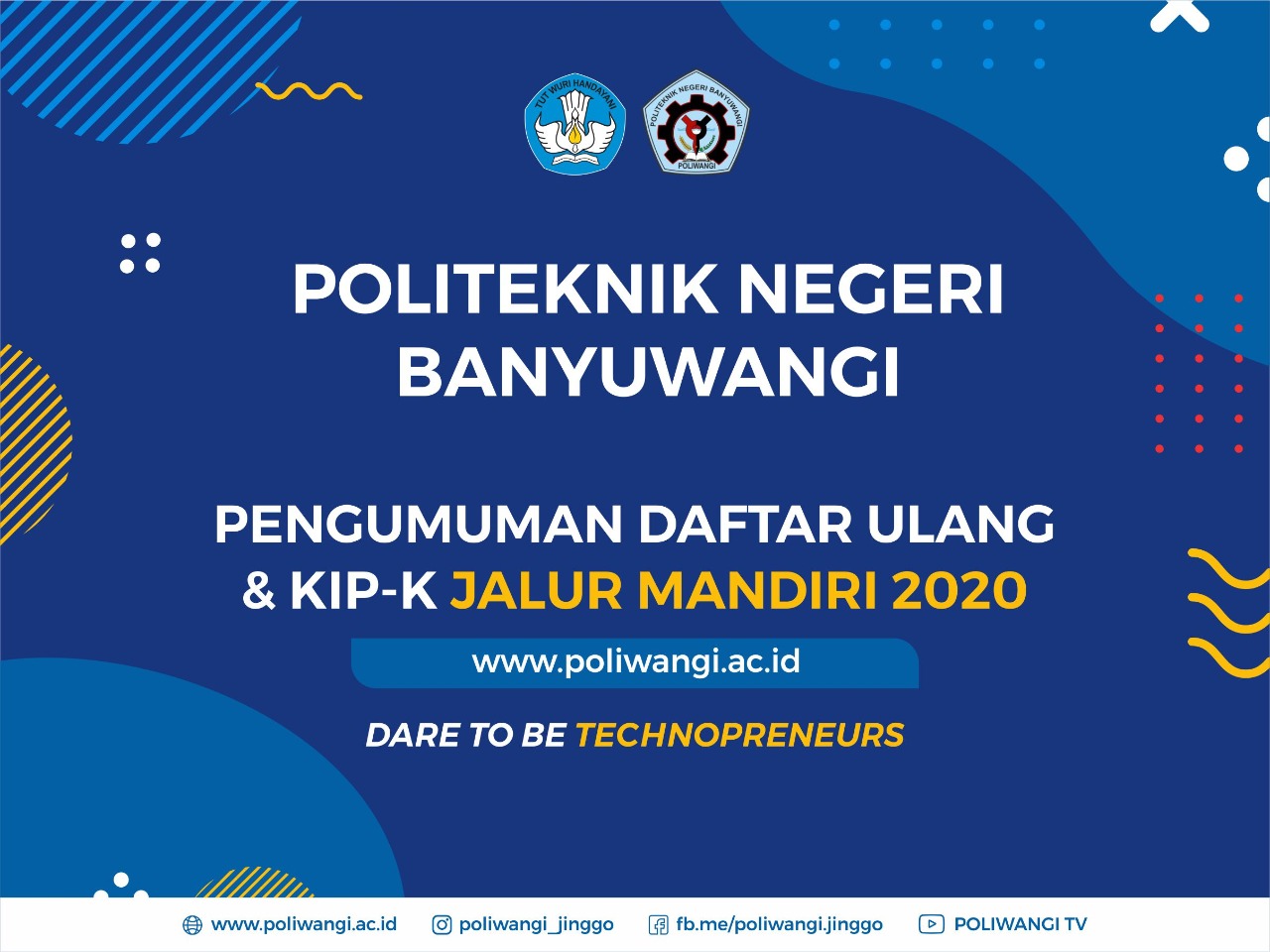 Diberitahukan kepada mahasiswa baru Politeknik Negeri Banyuwangi yang telah melakukan daftar ulang pada jalur SNMPN 2020 dan SBMPN 2020, Politeknik
