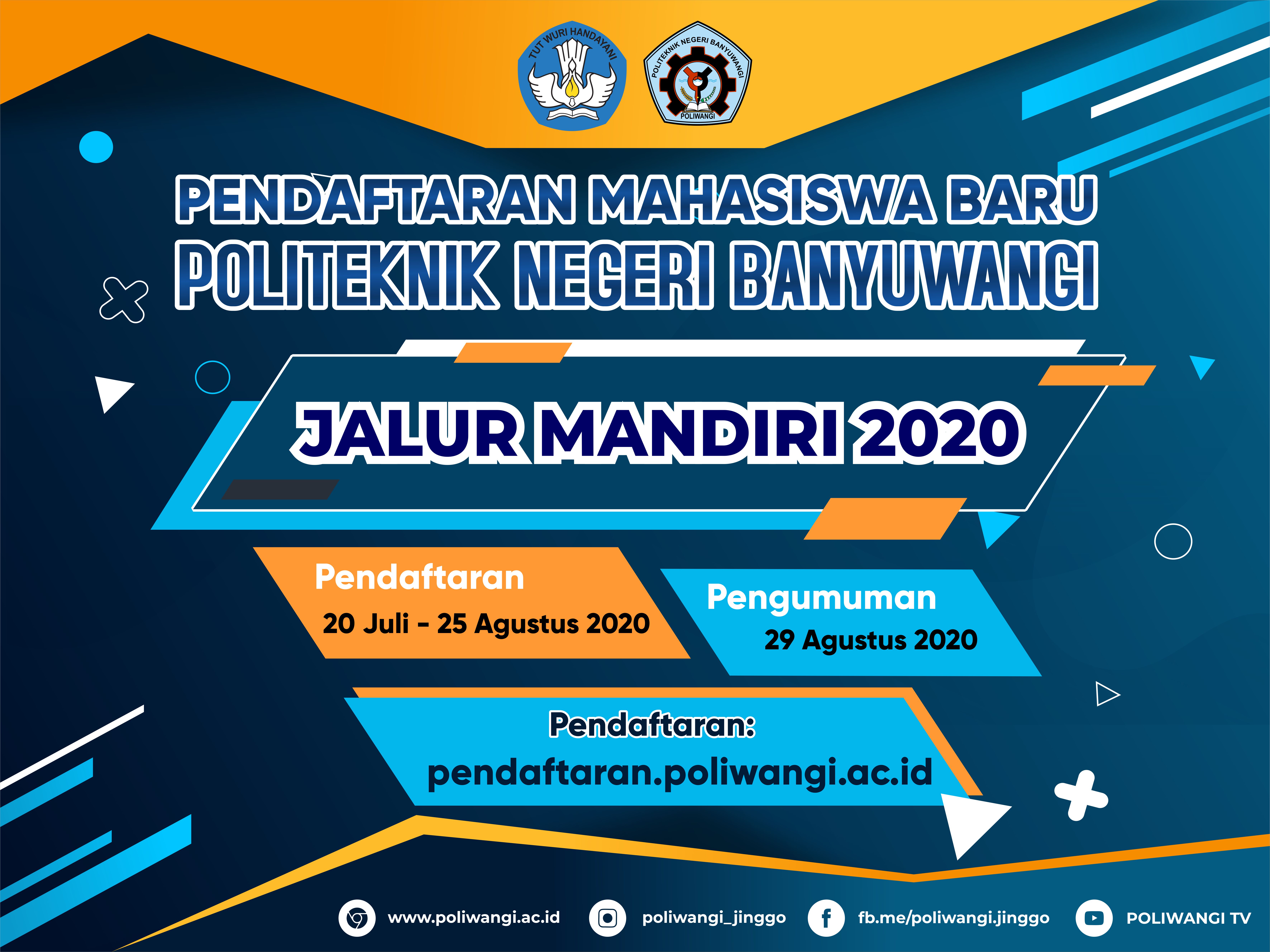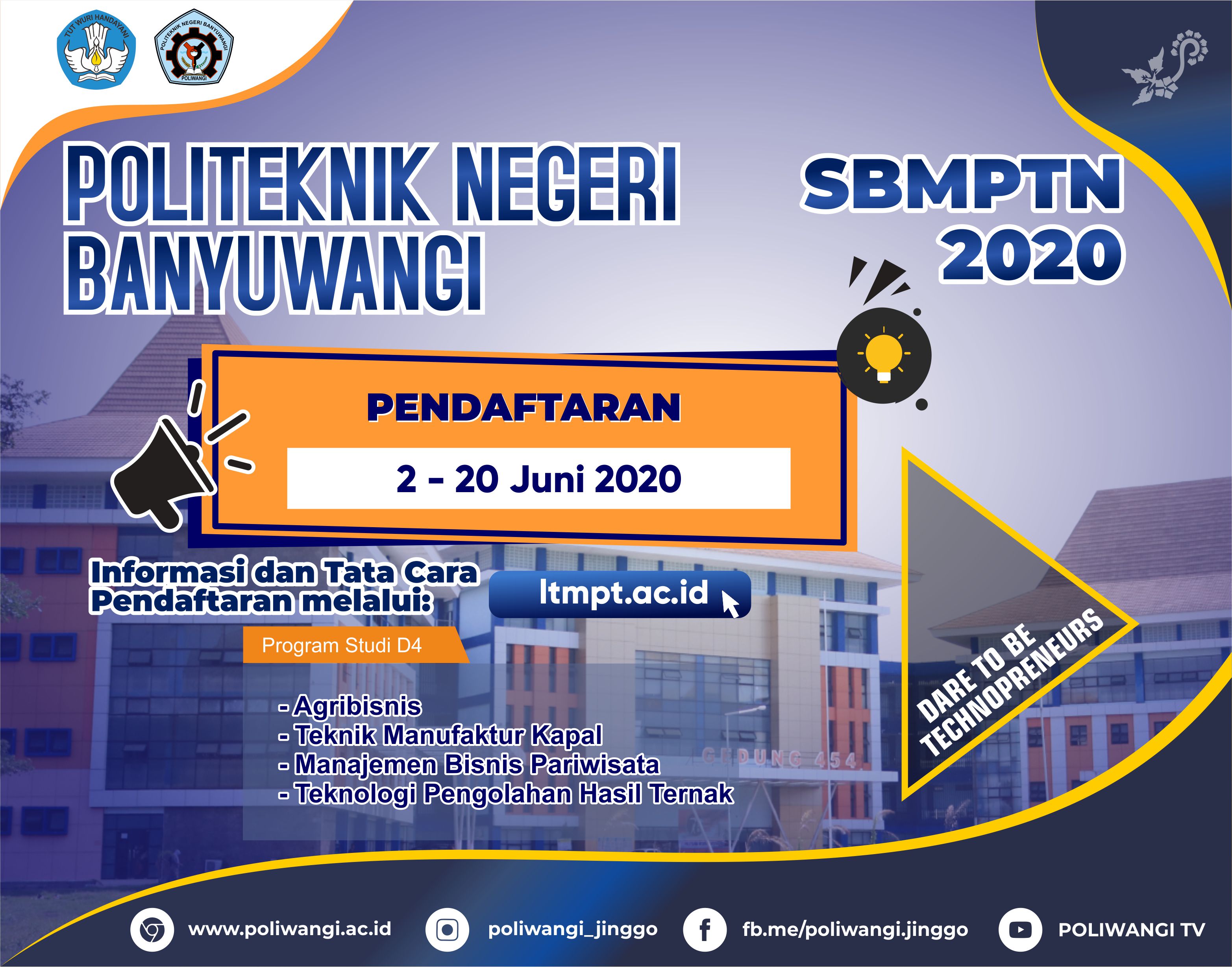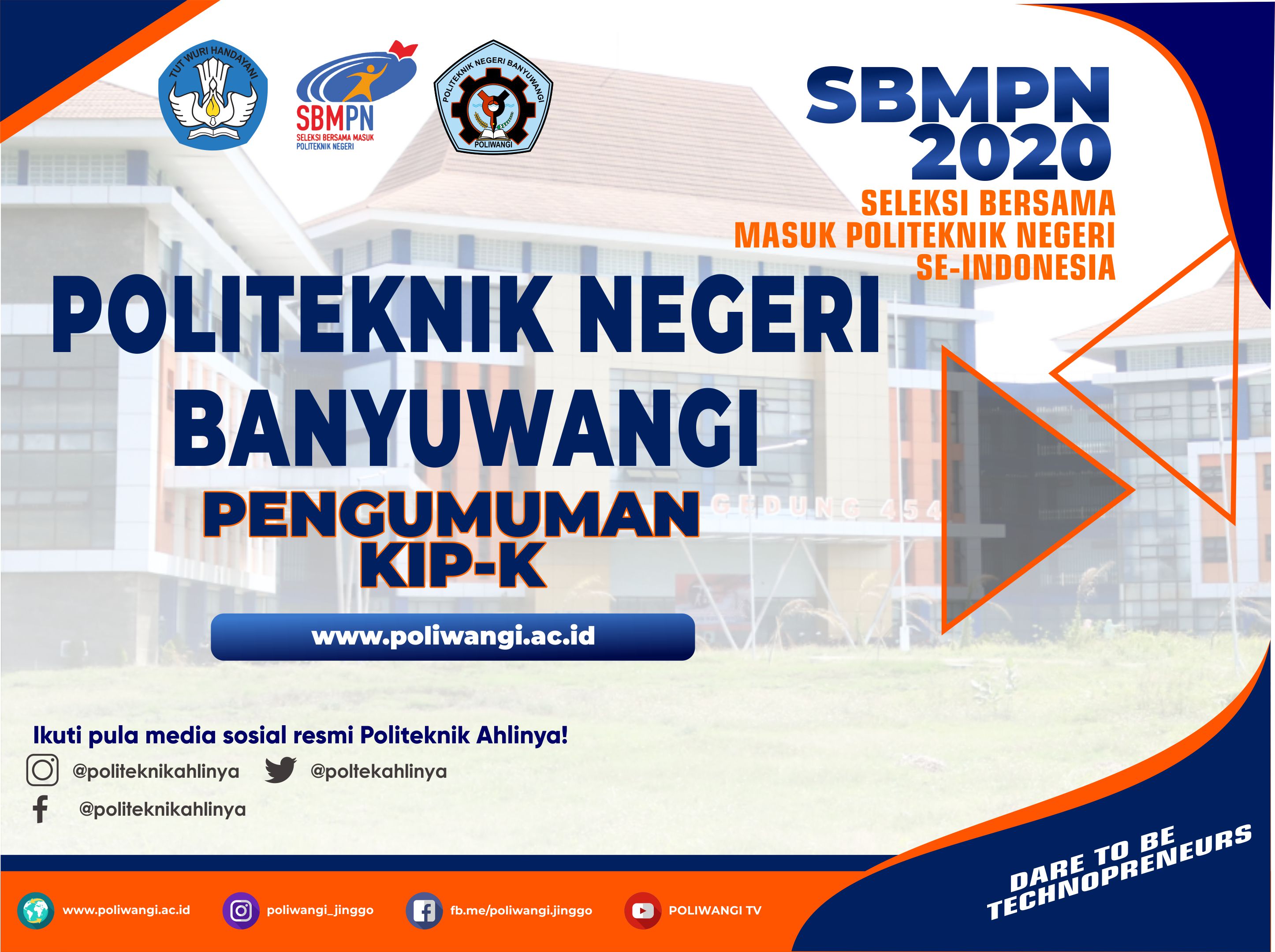 Pengumuman Penerimaan Mahasiswa Baru Politeknik Negeri Banyuwangi Jalur SBMPN 2020 Dapat diakses melalui laman resmi sbmpn.politeknik.or.id Bagi anda calon mahasiswa baru
