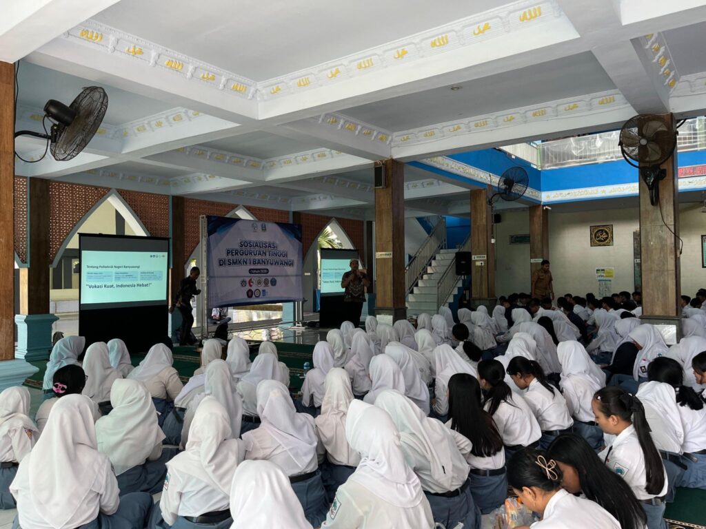 Politeknik Negeri Banyuwangi melalui Tim Sosialisasi Penerimaan Mahasiswa Baru (PMB) menghadiri undangan sosialisasi kampus yang diselenggarakan oleh SMK Negeri 1