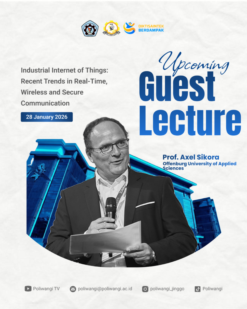 Banyuwangi – Politeknik Negeri Banyuwangi (Poliwangi) kembali menghadirkan kegiatan akademik bertaraf internasional melalui Kuliah Tamu Internasional yang mengangkat tema “Industrial Internet of Things: Recent Trends in Real-Time, Wireless, and Secure Communication”. Kegiatan ini ditujukan bagi mahasiswa dan alumni Jurusan Bisnis dan Informatika.