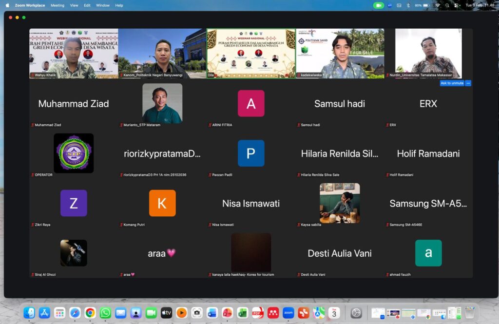Webinar nasional ini mengangkat tema “Pariwisata Berkelanjutan” dengan subtema “Peran Pentahelix dalam Membangun Green Economy di Desa Wisata”. Kegiatan tersebut dilaksanakan pada Selasa, 3 Februari 2026, bertempat di Ballroom Mandalika STP Mataram dan diikuti oleh peserta dari berbagai daerah, baik secara luring maupun daring.