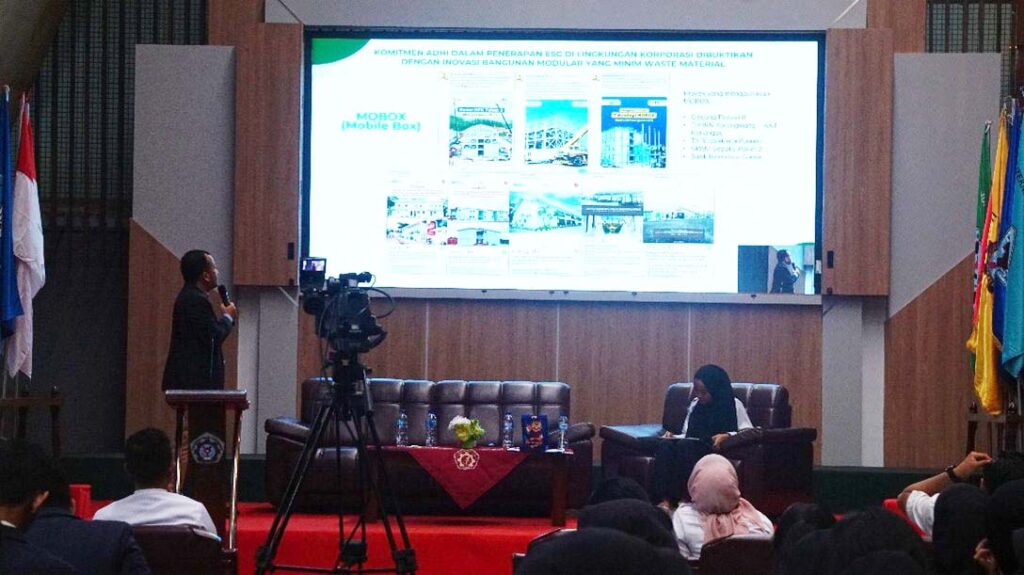 Dan materi ditutup dengan pengabdian dari P.T. Adhi Karya sebagai Badan Usaha Milik Negara (BUMN) terhadap Negara melalui inovasi.mobile box (MOBOX) yang bertujuan untuk mempercepat pembangunan di pulau terluar Indonesia. Kegiatan ini dihadiri oleh dosen-dosen Jurusan Teknik Sipil Politeknik Negeri Banyuwangi yang turut mendukung proses pembelajaran mahasiswa.