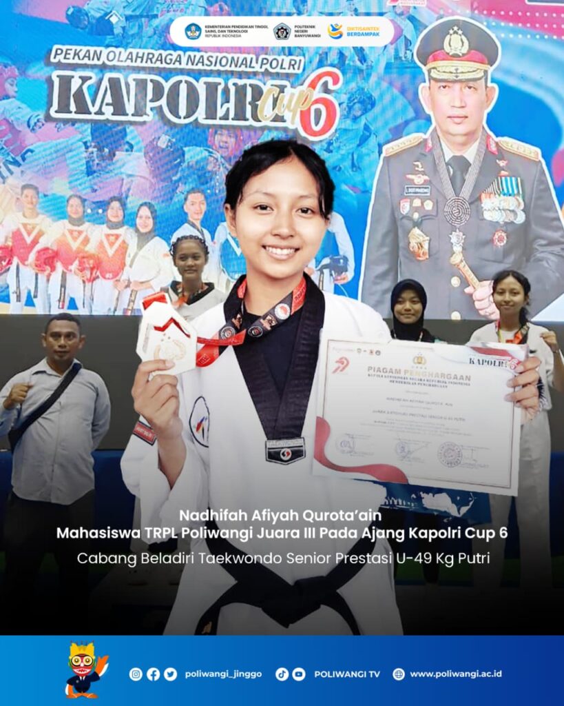 Nadhifah berhasil meraih Juara 3 pada Kejuaraan Taekwondo Tingkat Nasional dalam kategori Kyorugi Prestasi U-49 Kg Putri. Prestasi tersebut diraih melalui kerja keras, latihan intensif, serta dukungan dari UKM Olahraga Divisi Taekwondo Poliwangi.