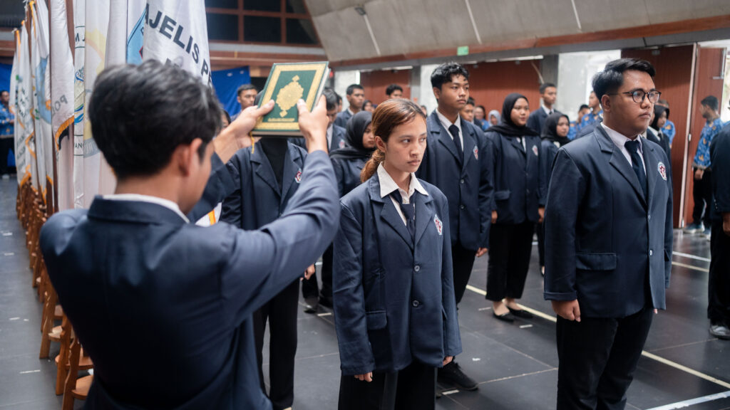 Prosesi pelantikan dilaksanakan dengan seluruh ketua dan wakil ketua organisasi kemahasiswaan mengambil sikap sempurna, dilanjutkan pembacaan naskah pelantikan oleh Direktur. Selanjutnya, ikrar pengurus dibacakan oleh Ketua Badan Eksekutif Mahasiswa dan diikuti seluruh pengurus ormawa, sebelum kemudian disampaikan sambutan serta arahan dari Direktur kepada pengurus yang baru dilantik.