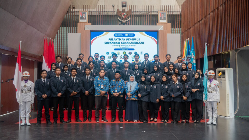 Banyuwangi, 19 Februari 2026 – Politeknik Negeri Banyuwangi menyelenggarakan Pelantikan Pengurus Organisasi Kemahasiswaan (Ormawa) Periode 2026 bertempat di Aula Abdullah Azwar Anas. Kegiatan ini menjadi momentum penguatan peran mahasiswa dalam kepemimpinan, kolaborasi, serta pengembangan program kemahasiswaan di lingkungan kampus.