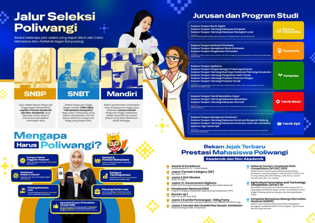 Berikut Program Studi yang dibuka di Jalur UTBK-SNBT 2025 di Politeknik Negeri Banyuwangi!