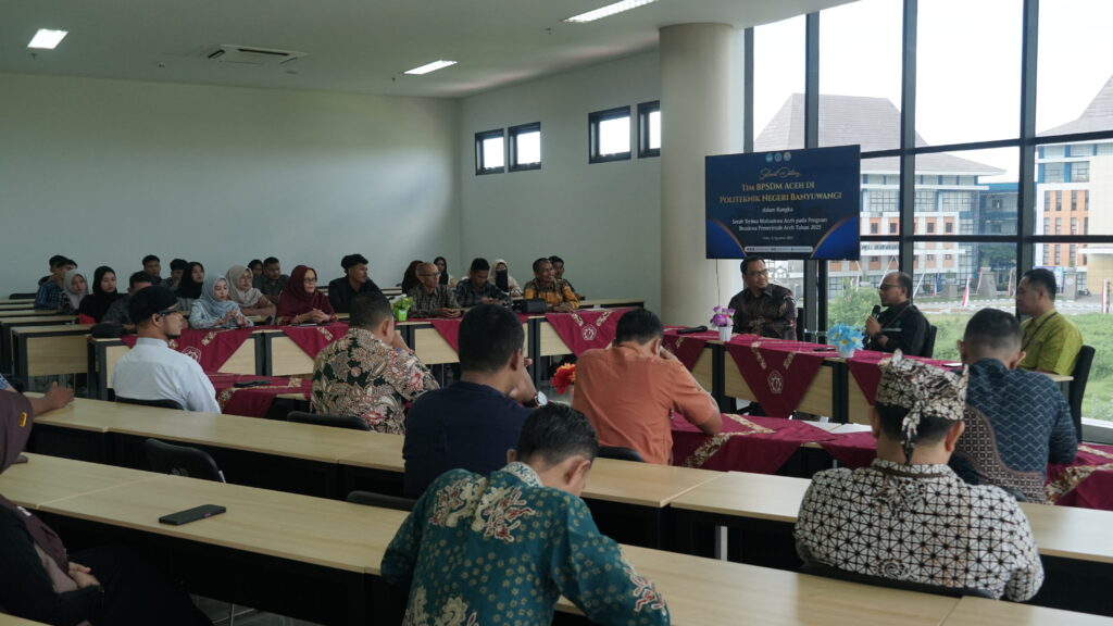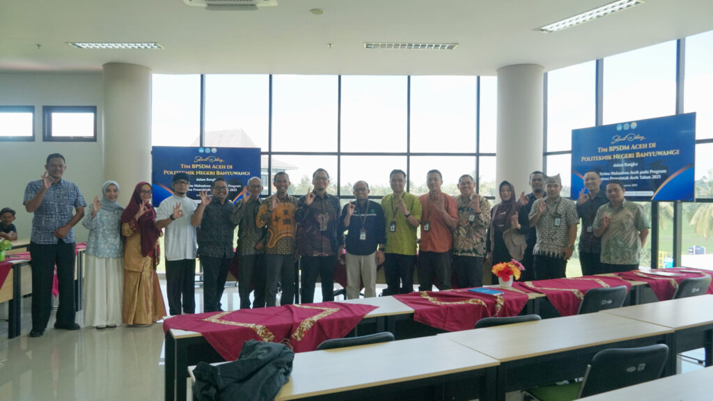 Banyuwangi 6 Agustus 2025 – Politeknik Negeri Banyuwangi (Poliwangi) menerima kunjungan dari Badan Pengembangan Sumber Daya Manusia (BPSDM) Aceh dalam rangka serah terima mahasiswa asal Aceh yang akan menempuh pendidikan di Poliwangi. Kunjungan ini merupakan bagian dari implementasi kerja sama antara Pemerintah Aceh dengan Politeknik Negeri Banyuwangi yang telah tertuang dalam nota kesepahaman (MoU).