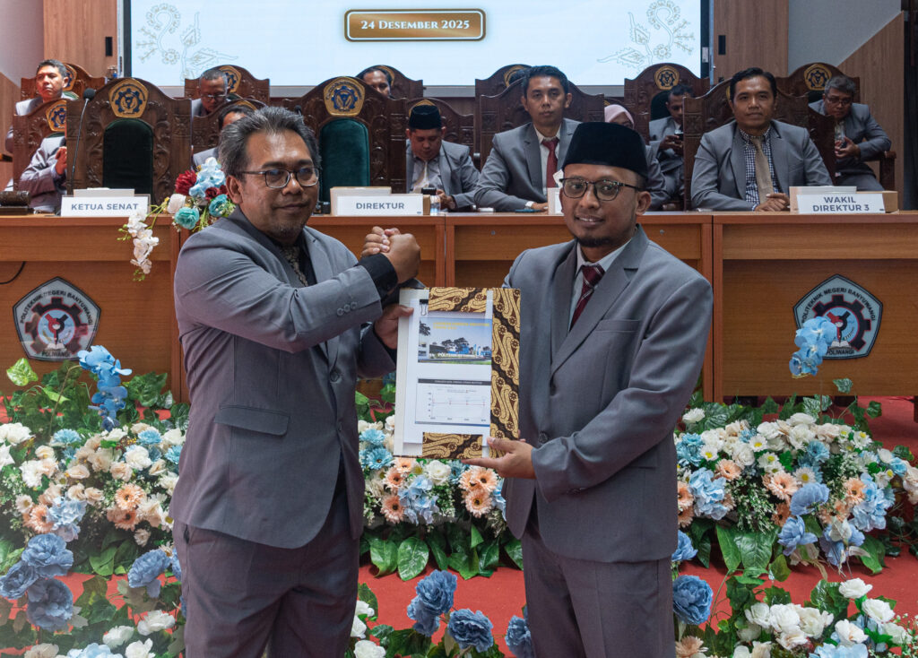 Banyuwangi, 24 Desember 2025 – Politeknik Negeri Banyuwangi (Poliwangi) menyelenggarakan Sidang Tahunan Terbuka Senat dalam rangka penyampaian laporan capaian kinerja tahun 2025 bertempat di Aula Abdullah Azwar Anas. Kegiatan ini berlangsung lancar dan dihadiri oleh jajaran pimpinan, senat, dosen, tenaga kependidikan, serta perwakilan mahasiswa sebagai bentuk transparansi dan akuntabilitas kinerja institusi.