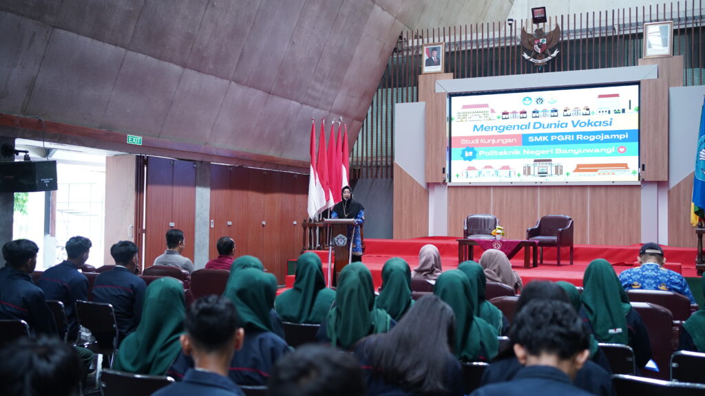 Politeknik Negeri Banyuwangi (Poliwangi) menerima kunjungan edukatif dari SMK PGRI Rogojampi, Kamis (5/02). Kunjungan ini diikuti oleh 50 siswa dan 5 guru pendamping dari Jurusan Bisnis Digital, sebagai bagian dari kegiatan pengenalan pendidikan tinggi vokasi dan lingkungan kampus Poliwangi.